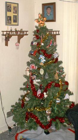 And here is our Christmas tree, all decked out in the corner of the living room. Now will the cats leave it alone? Of course not! Taken December 14, 2004 at 8:12 a.m.