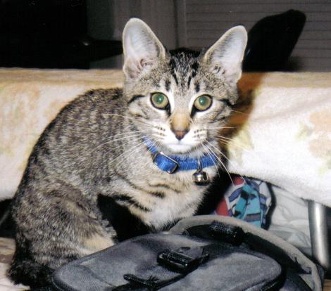 Joe took a nice shot of Stormy at the foot of our bed. That’s the camera bag in front of her (probably October 7 or 8).