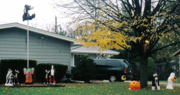 This house was nicely decorated for Halloween, with several creatures and a pumpkin head (Taken November 1).