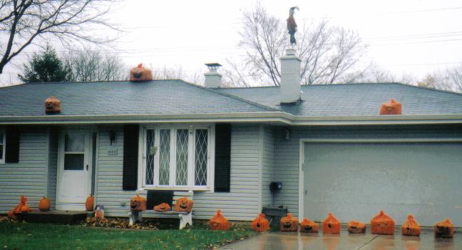 This simple display demonstrates creative use of those pumpkin head trash bags used for collecting autumn leaves (Taken November 1).