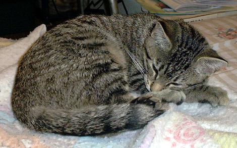 Finally, I took this shot of Stormy sleeping. (October 6 at 11:23 p.m.) The first evening is now ended.