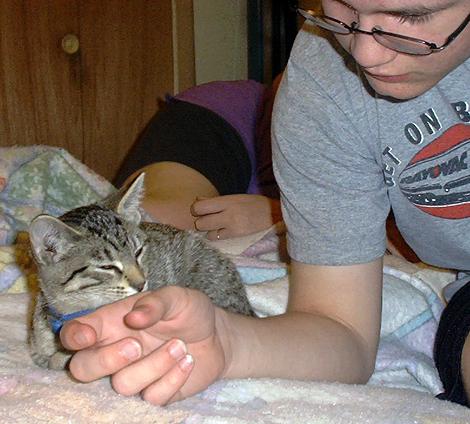Joe rubs Stormy under the chin; she seems to enjoy that a lot. (October 6 at 10:05 p.m.)