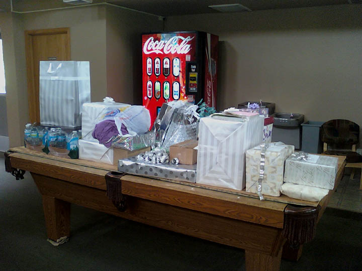Gifts in the Student Center, taken the day after the wedding (July 24) on Wendi’s cell phone