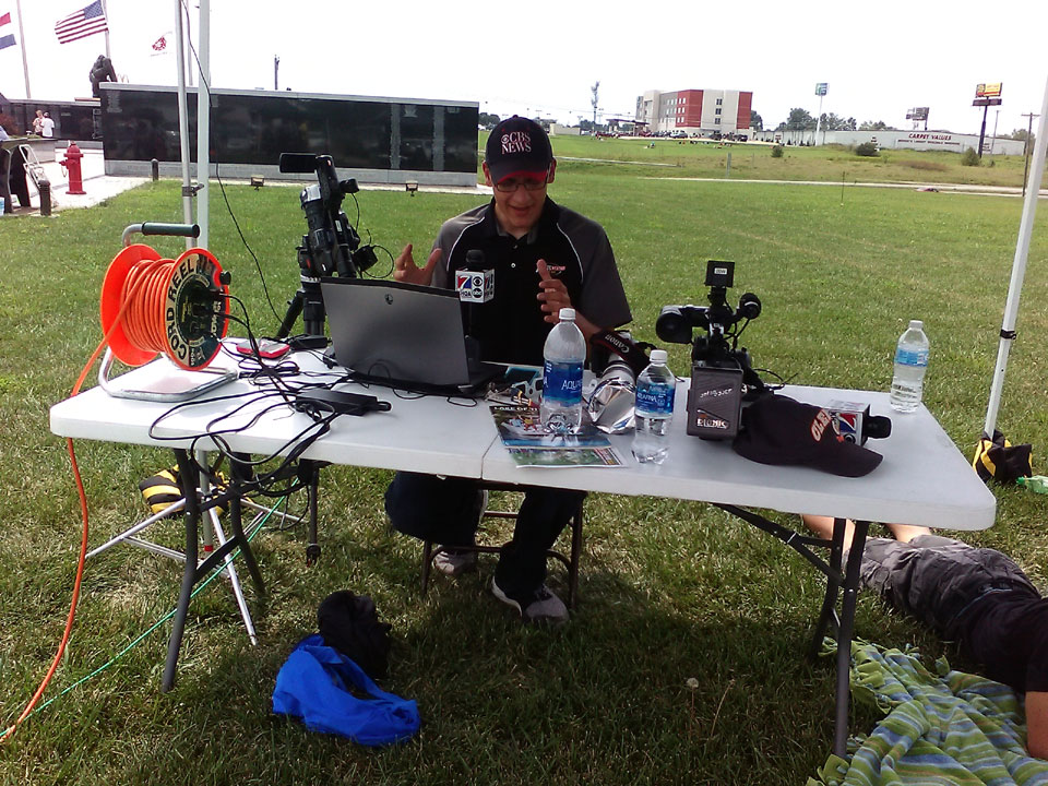 …and the broadcast booth was right in front of our car! Meteorologist Nick Stewart excitedly described events as they unfolded, giving relevant information along the way.