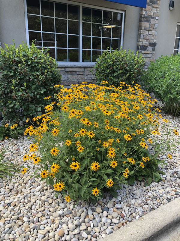 Black-eyed Susans in a flower bed outside of a Culver’s restaurant. (August 7)