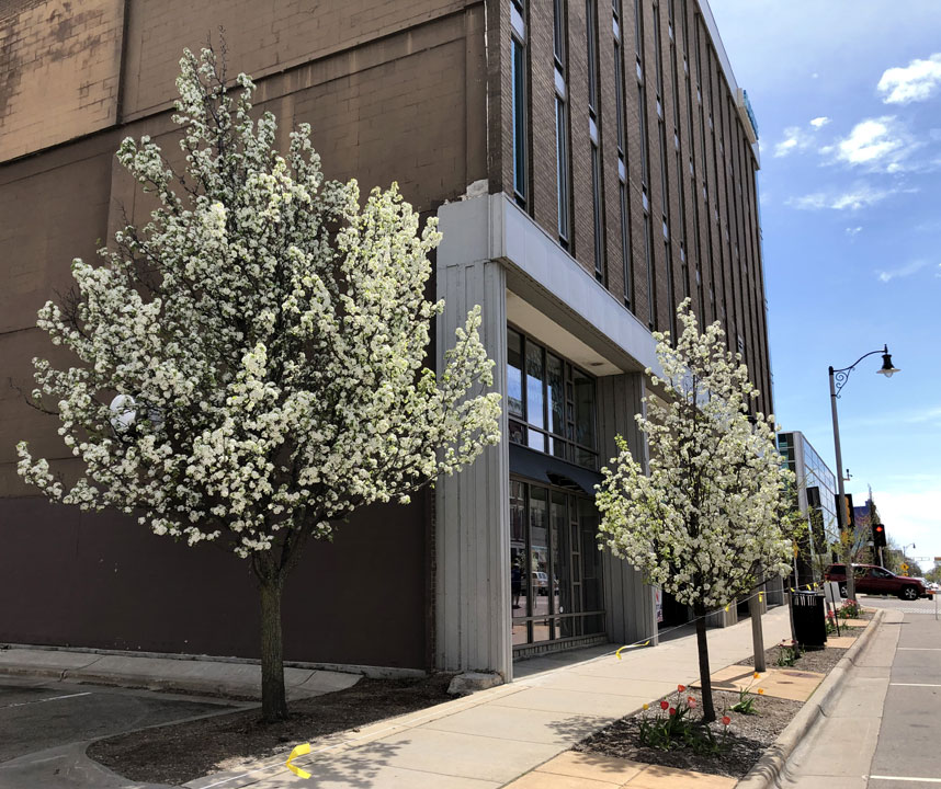 Pretty white blossoms on trees seem to echo the messageā¦