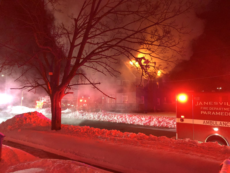 Around 10:00 pm on Monday, February 1, 2021, emergency vehicles gathered near our house. The house across the street (914 W. Van Buren) was on fire! An ambulance parked right in front of our house.