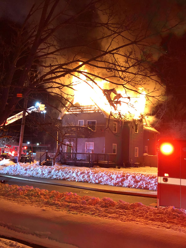 The entire top of that house is now in flames. Firemen continue to battle the blaze. The heat can be felt outside, at our house.