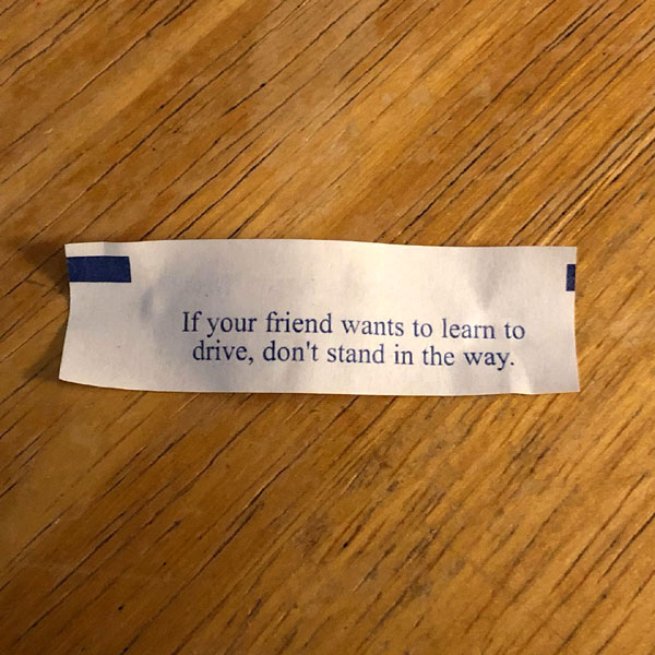 “If your friend wants to learn to drive, don’t stand in the way.” Good advice!