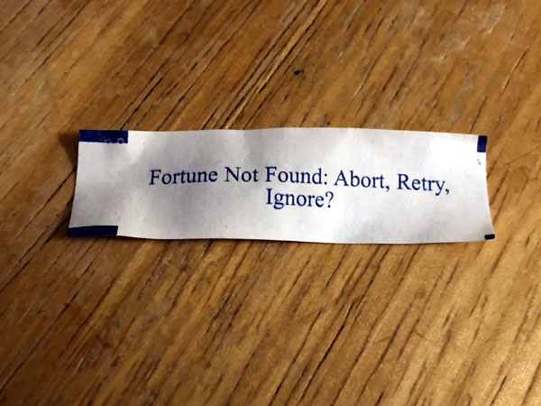 “Fortune Not Found: Abort, Retry, Ignore?” (Um… okay… I think.)
