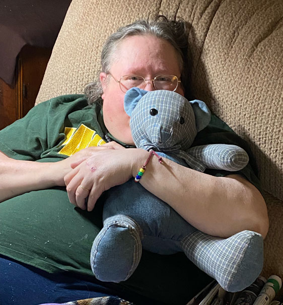 A friend made this “memory bear” for Wendi, from the clothes of her departed brother, Reuben. (April 22)