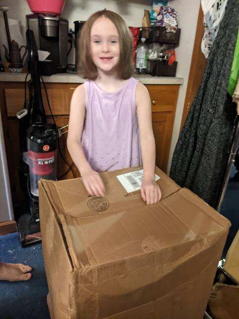 Asha, our granddaughter, opens a present we sent for “Christmas in July” on about July 28. Photo courtesy of Joe and Elizabeth Petitt.