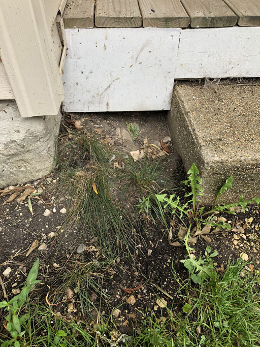 The soil sank, leaving a hole under our porch (taken August 7), allowing a cat to find refuge in there.