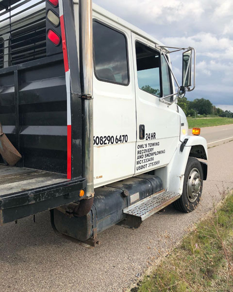 Our old van died on the way home from Fort Atkinson with our friends on August 20, 2022. Our new handicap accessible van was ordered but hadn’t arrived yet, so we were without a vehicle for a few weeks. Here, the tow truck has just arrived.
