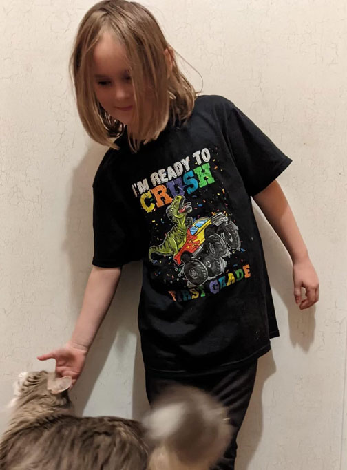 Asha with the cats at home in Red Wing, courtesy of Joe and Elizabeth Petitt.