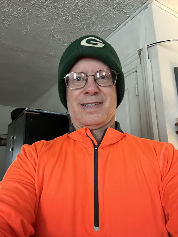Charlie in cold weather gear, ready for a run, November 19, 2022.