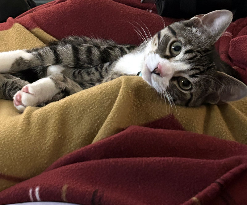 Buddy on the bear blanket. (August 5)