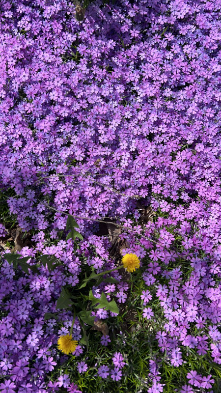Lilacs in full bloom, sometime in May. A couple of dandelions photobombed this picture!