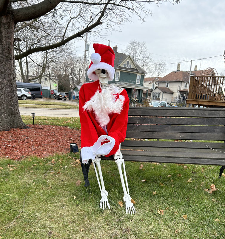 Instead of taking down this Halloween skeleton figure, someone decided to dress it up as Santa Claus! (December 15)