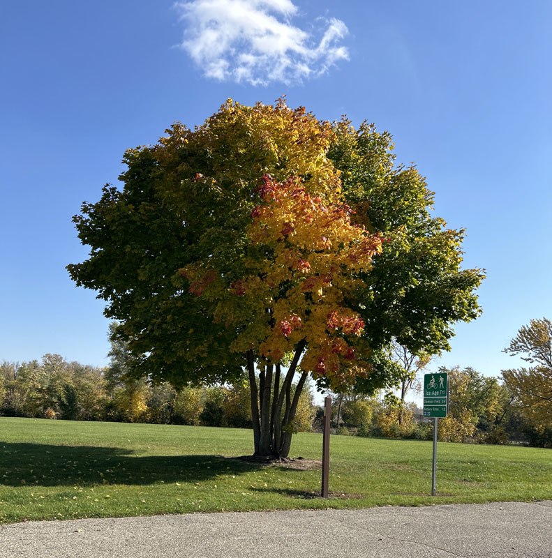 This tree has some fall colors, but the rest of it is still green. (October 25)