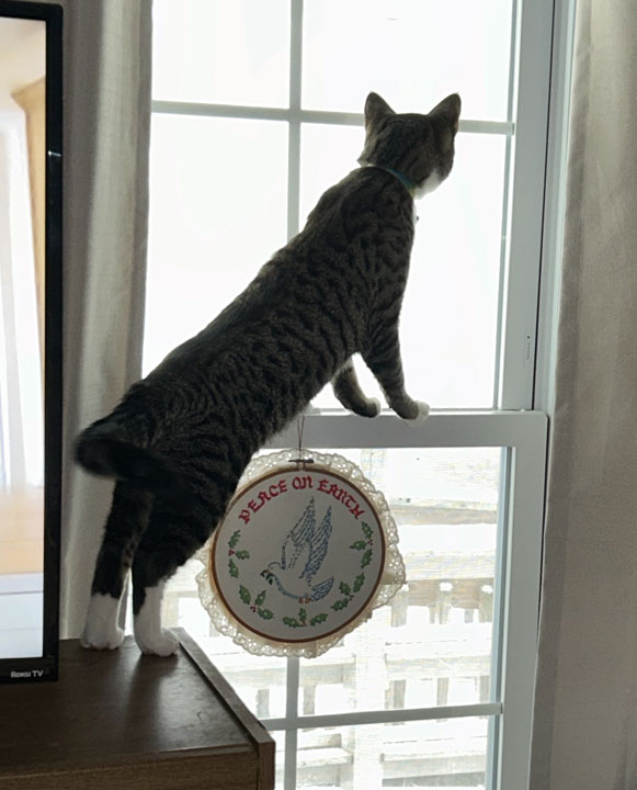 Buddy looks out the front window. (October 31)