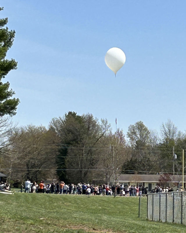 The eclipse began at 12:46 pm. At 1:23 pm, they launched this weather balloon in the park.
