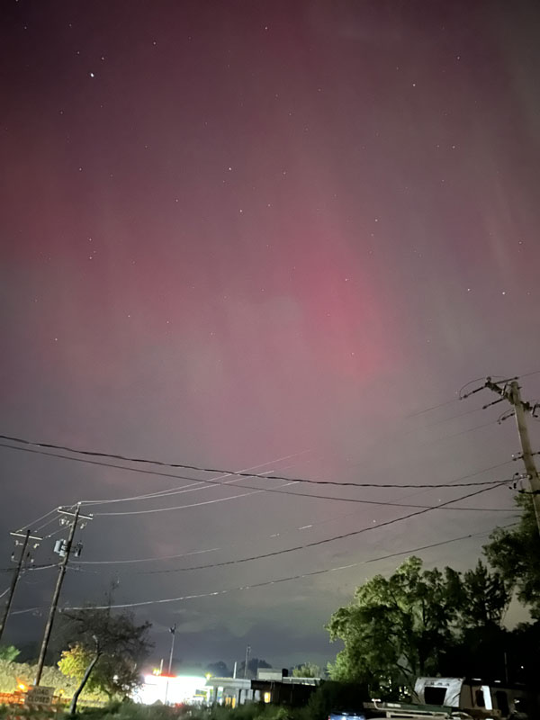 Another great view of the red aurora, with some blue-green near the horizon. (August 12)