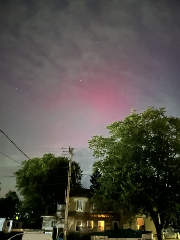 By 1:41 am, clouds were beginning to obscure the aurora. Time for bed. (August 12)