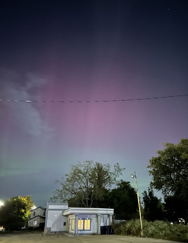 September 16, 10:22 pm - there was a coronal mass ejection from the Sun that reached Earth, creating this nice auroral display. It was only visible on camera though.