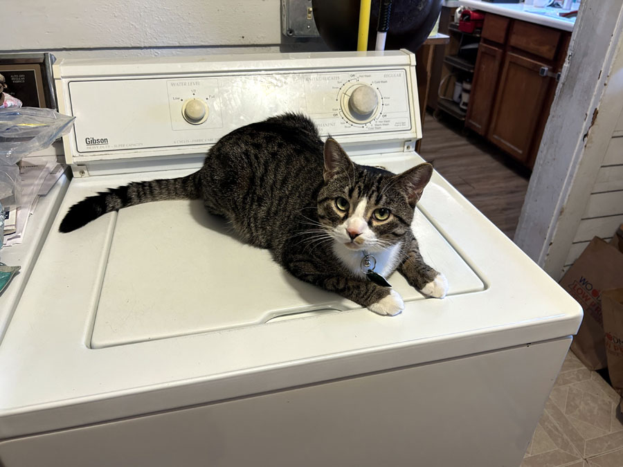 Buddy sitting on top of the washer. (January 8)