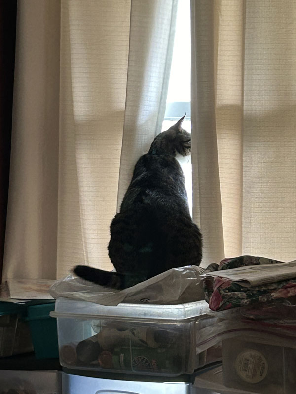 Buddy looks out the living room window. (June 3)