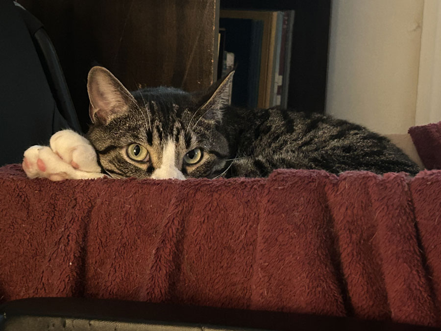 Close-up of Buddy’s eyes, in his bed. (June 29)