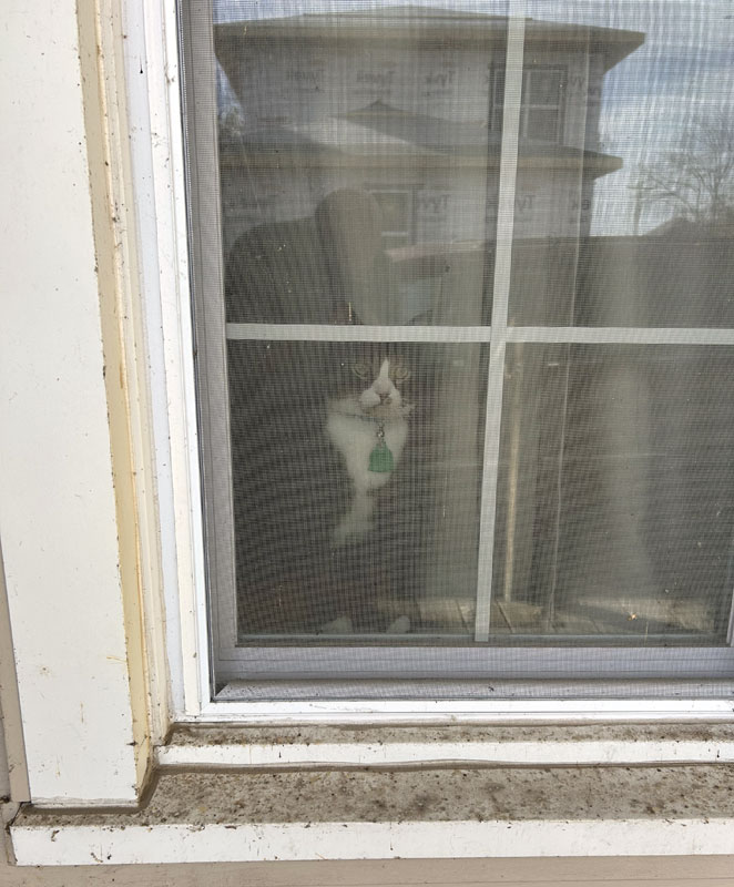 Buddy looks out the living room window. This photo was taken from outside. (October 28)