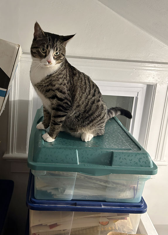 Buddy on a stack of boxes upstairs. (February 20)