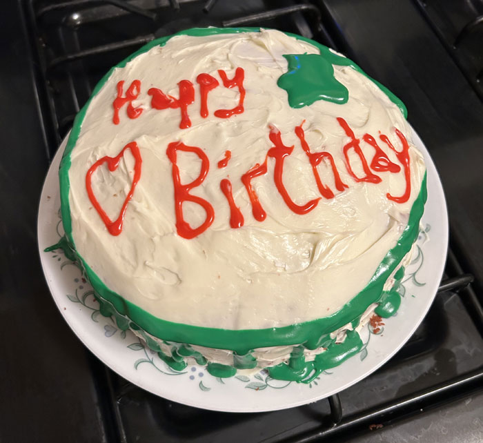 The birthday cake I frosted, February 15. Wendi’s birthday is then; mine is two days later.