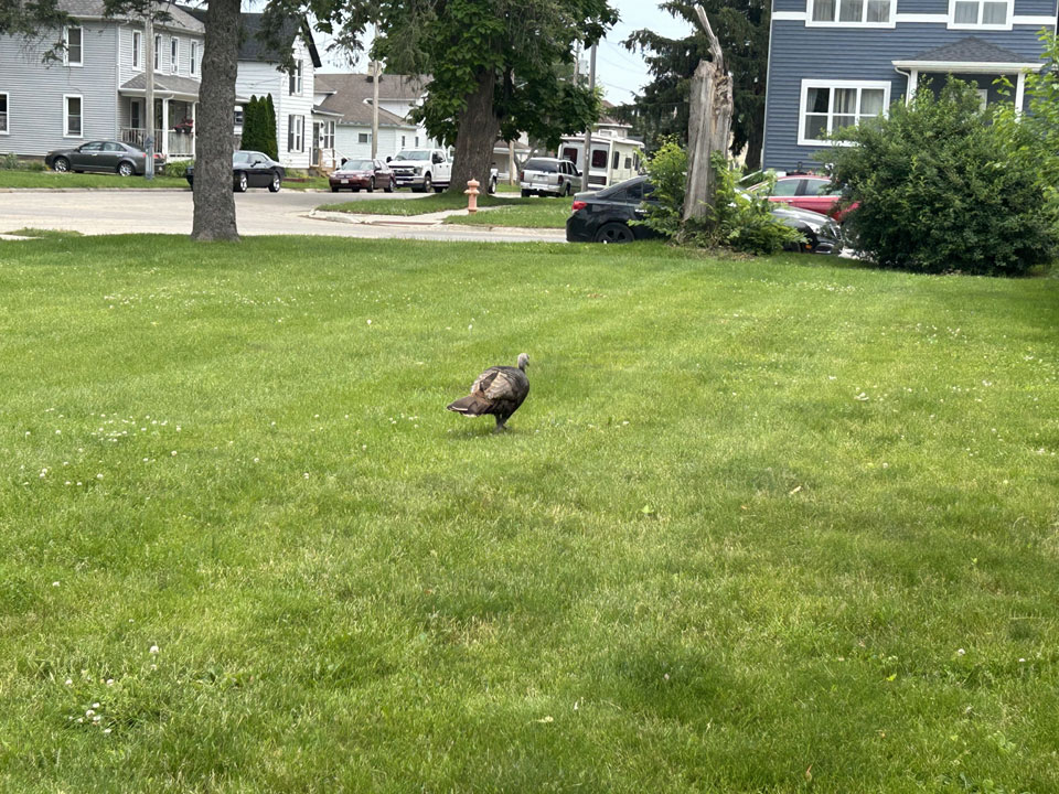 Turkey in yard, June 15, taken on iPhone. (4th of 4). Bye-bye, birdie.