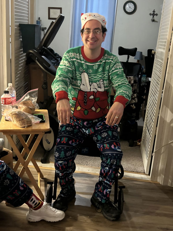 Our friends, Julie and Craig, came for Christmas Day. Here is Craig in his Christmas outfit.